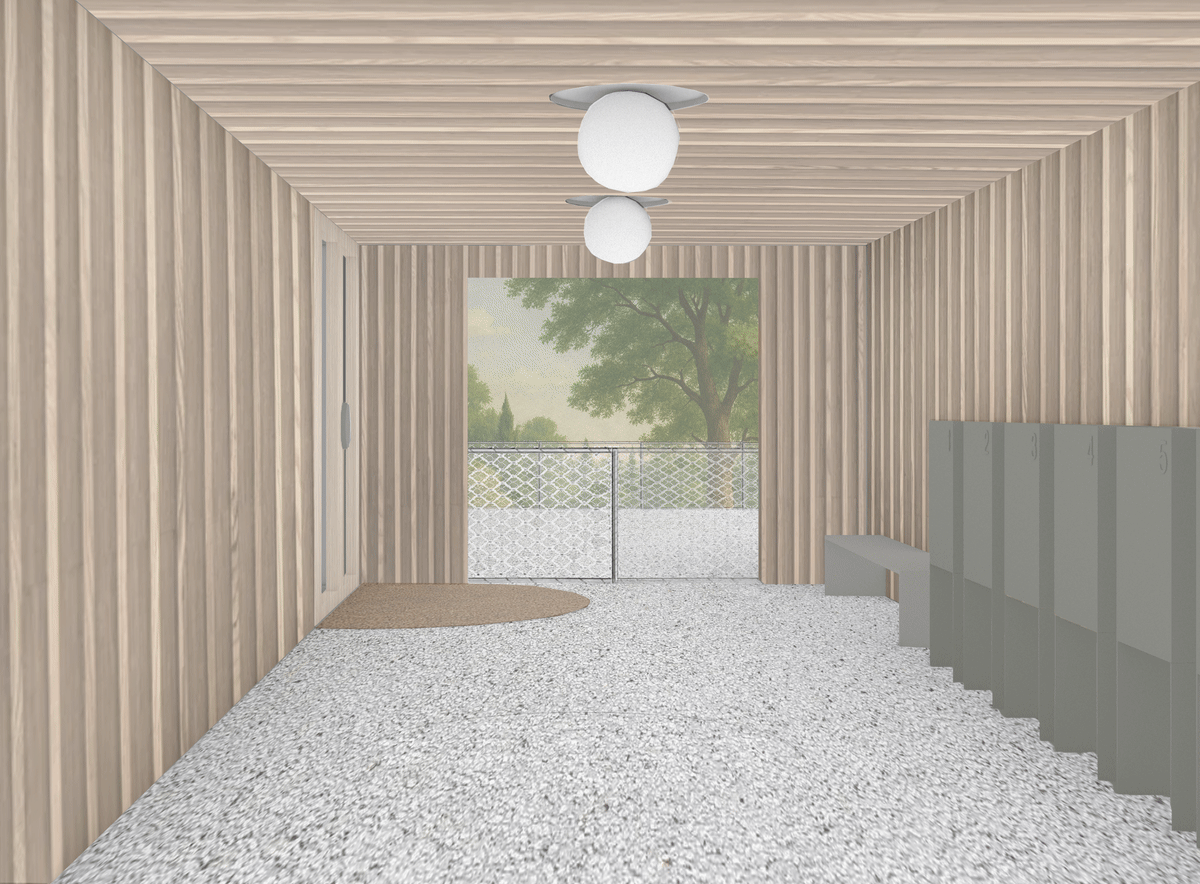 Sur la base de cinq variantes typologiques analysées, la solution retenue propose une volumétrie compacte qui négocie la pente naturelle du terrain. Le bâtiment s’organise sur un socle semi-enterré en béton apparent, accueillant les zones de stationnement et les locaux techniques au nord, tout en dégageant un rez-de-jardin habitable au sud.